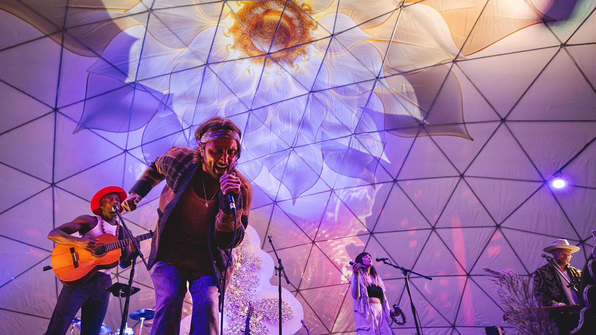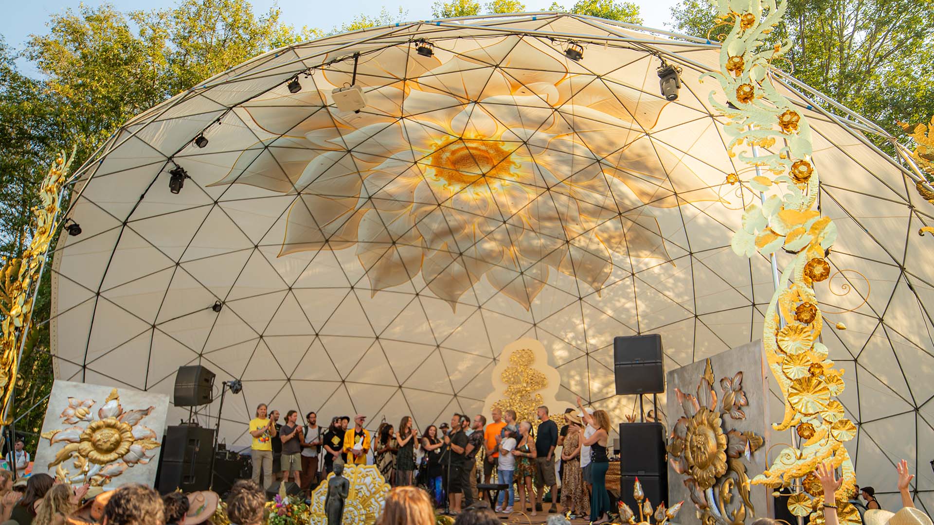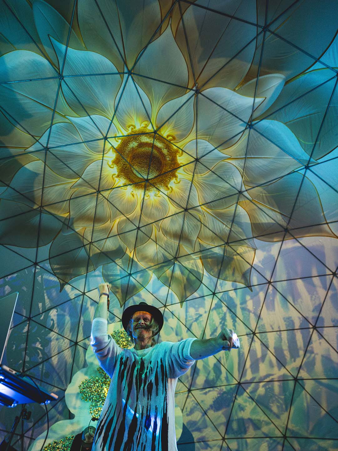 Xavi Panneton is an abstract, graffiti, and visionary artist. In 2016 Xavi had created a one of a kind hand pianted dome cover for Imagine Music & Arts Festival. During the years, the dome has been used over dozens of gatherings and events where wear, tear and fading has occured. In 2023, Blooming Mind Media had the go-ahead to created a replica that matches exactly how the original art was in Vector format so Xavi’s art and live on through more special events.