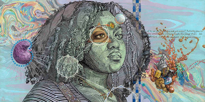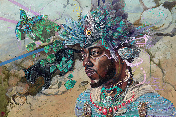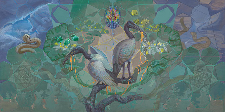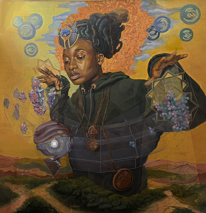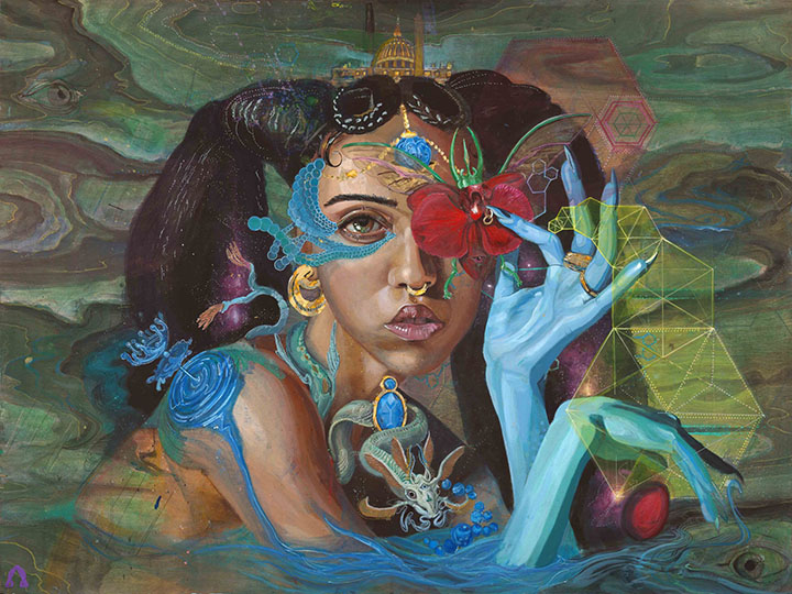 Adam One’s work derives from a deep understanding of form and function, and an active interest in the questions of human existence through spiritual evolution. His pieces are born from the subconscious and are extremely chaotic amalgamations of archetypal subjects and stories. Meant to be ever changing and revealing, his pieces beckon one’s mind to question the world around, and to look at everything with a new perspective. Philosophically and Spiritually, Adam finds inspiration in the symbols of Theosophy, Cosmogony, Alchemy, Hermeticism and Gnosticism. It is from this groundwork that he constructs his own view of the cosmos. Working ancient concepts into future imaginings.