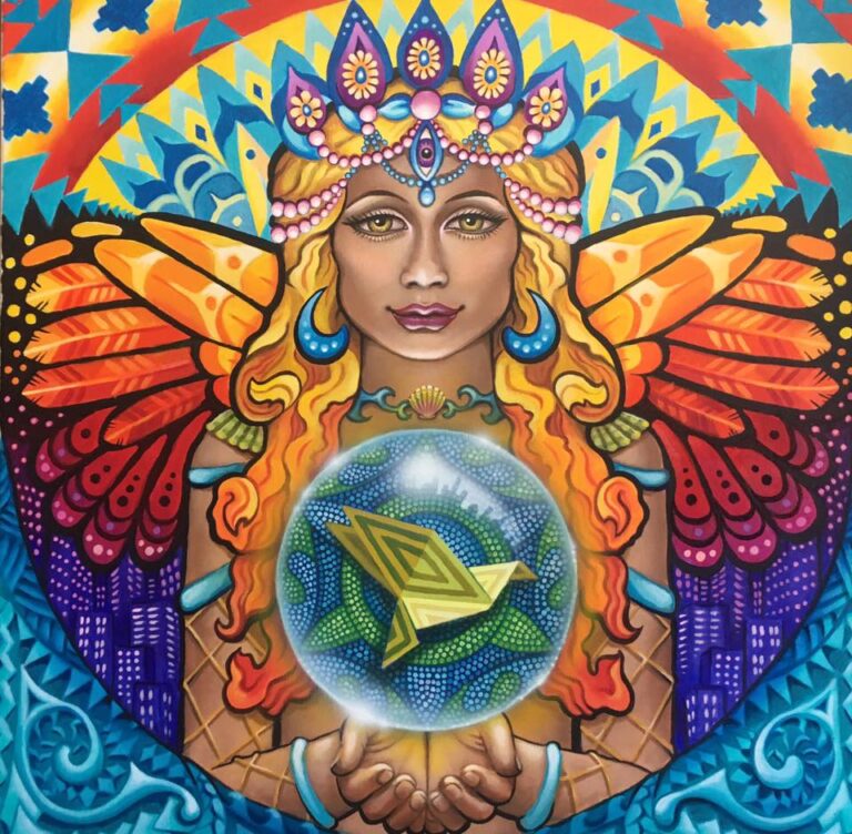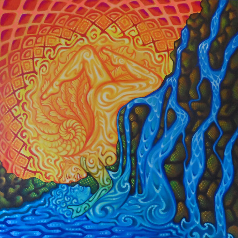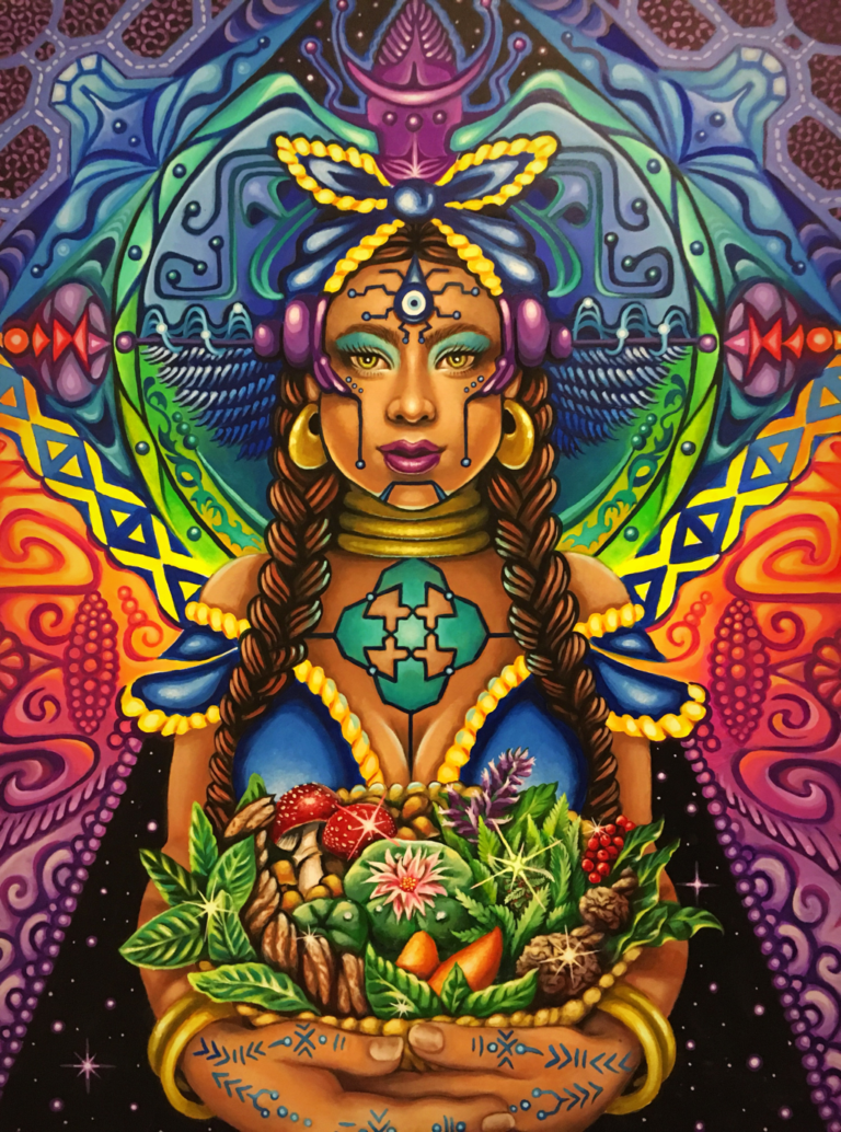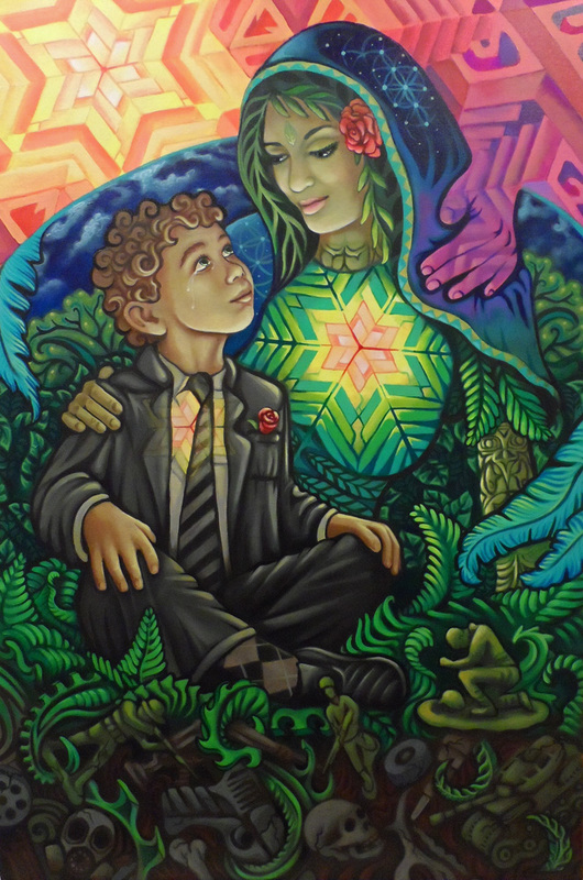 Burgandy Viscosi is a Seattle based artist. She started her career after a life changing car accident at age 20. After this death experience she devoted her life to expressing the ideas and visions she had seen through creativity. She loves to blend culture, science and philosophy together onto one canvas.